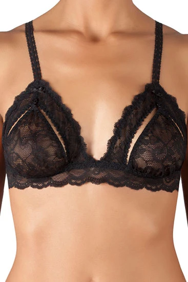 Geschmackvoller Triangel-BH mit verführerischen Cups aus Spitzengewebe. Die Mitte der Cups kann für noch erotischere Momente an einer kleinen Schleife am Trägeransatz auf- und zugeknöpft werden. Das Rückenteil ist mit einem Ring für die verstellbaren Träger ausgestattet. Die Unterbrustweite kann an einem Spitzengalon größengerecht verändert werden.