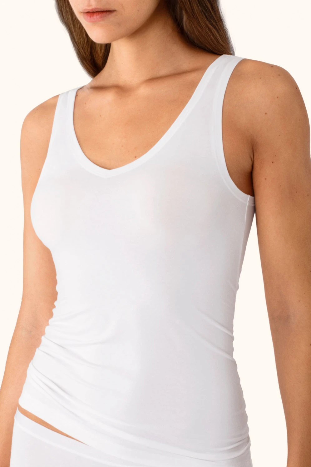 Modernes, cleanes Tank-Top von Calida, das Sie herrlich bequem quer durch Ihren Kleiderschrank kombinieren können. Es zeichnet sich unter Ihrem Outfit kaum ab und garantiert nebenbei ein sehr angenehmes Tragegefühl dank des lässigen Schnittes und des hochwertigen Materialmixes. Die Kombination aus Baumwolle und TENCEL™ Micromodal zu gleichen Anteilen, gemischt mit einem Hauch Elasthan, macht das Modell besonders weich und anschmiegsam.