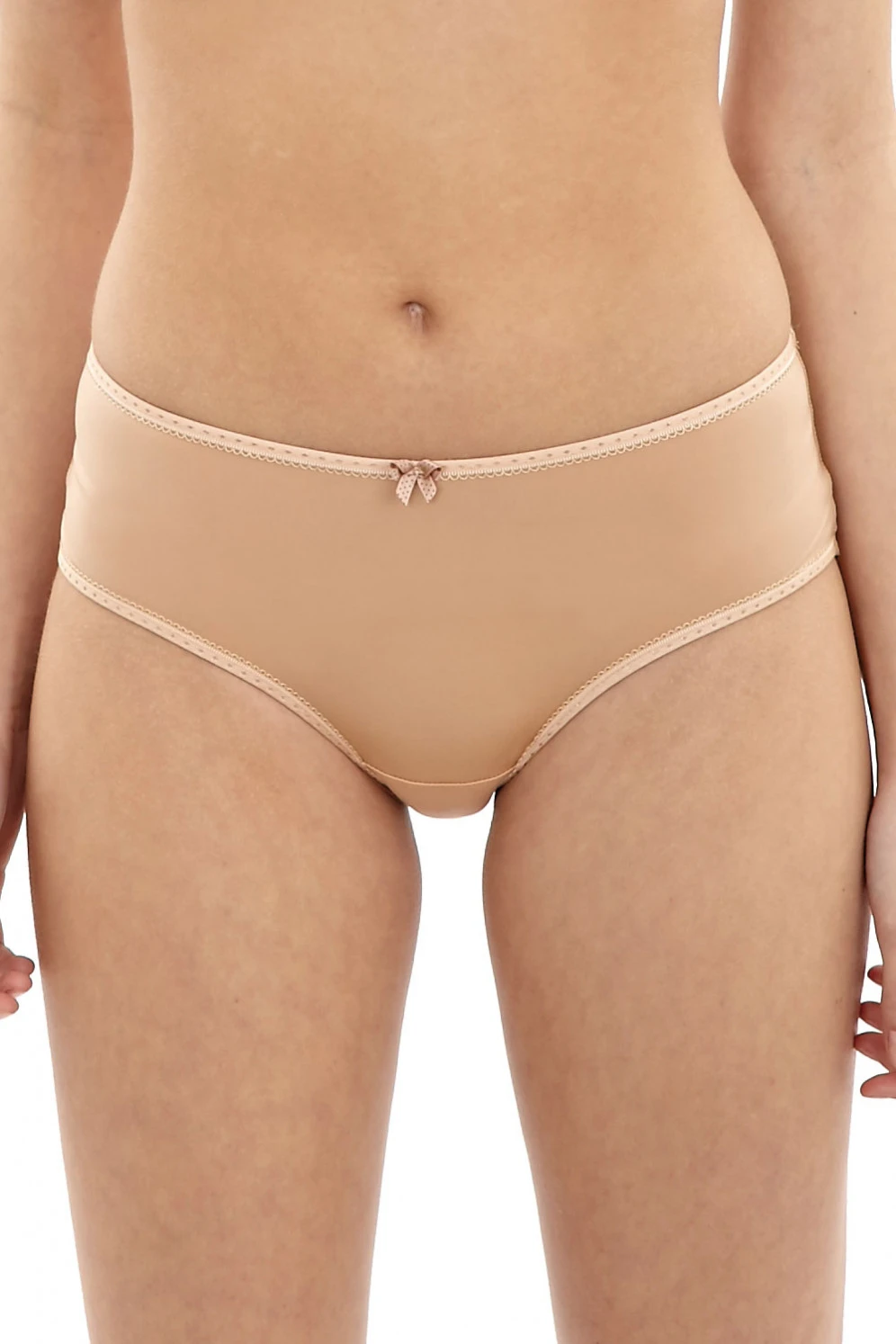 Formschöner und extra komfortabel geschnittener Slip mit angenehm breiten Seitenpartien. Die zarte Zierspitzenborte und das Schleifchen mit Tupfen-Muster mittig am Bund verleihen dem Dessous eine äußerst feminine Optik. Das anschmiegsame, glatte Material ist herrlich leicht und überzeugt im Tragegefühl. Passend ist der trägerlose BH 9170 aus dieser Serie!