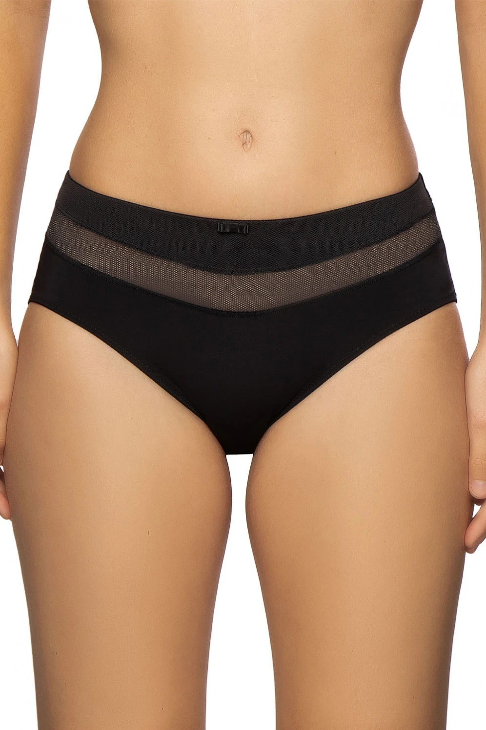 Dieser enorm dehnbare Slip mit einem Po-bedeckenden Schnitt verdankt seine Eigenschaften softer Mikrofaser in Hightechqualität. Die Gestaltung dieses ganz flach anliegenden Höschens ist geschickt und vorteilhaft gelungen. Eine Rundum-Passe weichen strukturierten Meshs vermittelt leichte Transparenz. Geschmückt ist das Dessous dezent: mit einem kleinen geraden Schleifchen.