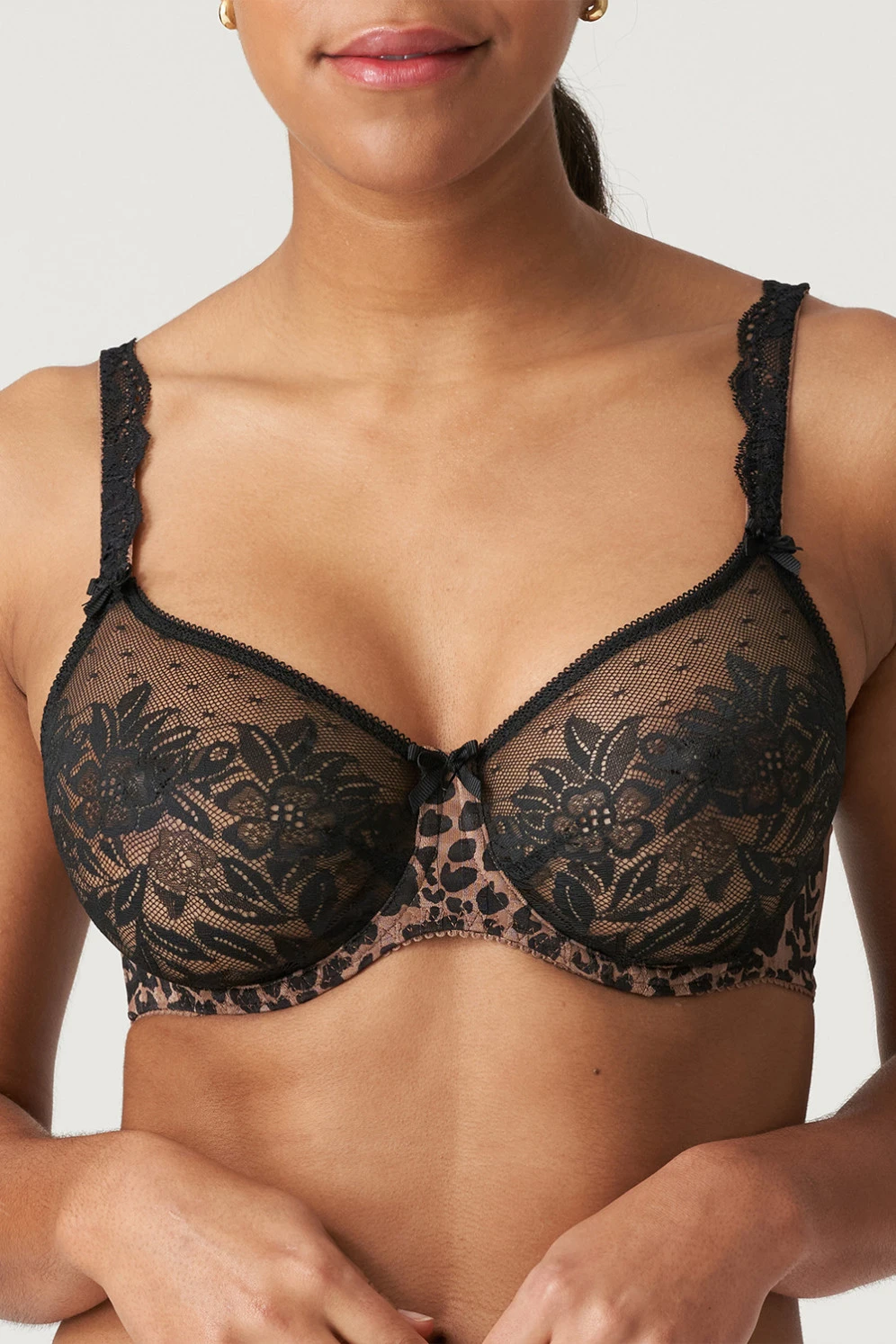 Ein völlig glatter Bügel-BH mit herzförmigem Dekolleté-Ausschnitt, der eine verführerische Ausstrahlung verleiht. Die Cups sind komplett aus einer wunderschönen Spitze mit Blumenmotiv gearbeitet – eine reizvolle Zierde für den weiblichen Körper. Die zarte Transparenz unterstreicht den luftig-leichten wie femininen Look dieses Wohlfühl-Dessous der Marke PrimaDonna. Mittelsteg und Seiten sind aus kariertem Stoff gearbeitet, die Träger sind mit eleganter Stickerei geschmückt.