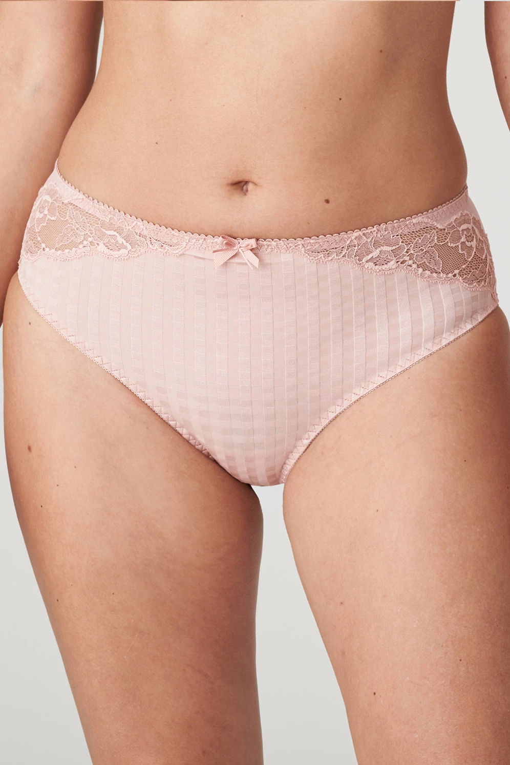 Eleganter, komfortabler Slip mit hoher Taille, ideal um ein kleines Bäuchlein zu kaschieren. Die aparten Spitzeneinsätze vorn seitlich und am hinteren Beinausschnitt optimieren durch ihr florales Design die Figur. Raffinierter Karostoff setzt die Vorderpartie in Szene, die Rückseite ist unifarben und blickdicht ohne störende Nähte gefertigt. Ein echtes Wohlfühl-Modell, das Ihren Lingerie-Look stimmig abrundet!