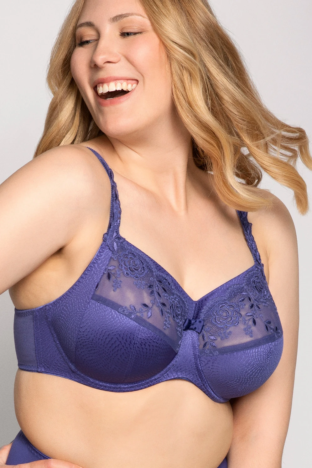 Dieser Bügel-BH ist am Dekolleté mit einer zusätzlichen Blende versehen, welche den Brustbereich nach oben hin abschließt, die Träger zur Mitte holt und einen definierten Ausschnitt bildet. Die Cups bestehen jeweils aus vier Teilen, wodurch die runde Form allseits eine gute Stützung erfährt. Edle Schnürlistickerei zeigt romantische Blüten und Blattwerk. Für tollen Tragekomfort ist funktionale weiche Mikrofaser mit festem Jacquard-Allover kombiniert. Elegant schmücken Applikationen die Trägeransätze. Zur Entlastung der Schultern wurde der BH am Rücken gedoppelt, was mehr Halt bedeutet. Seine sorgfältige Verarbeitung punktet u. a. durch die feine Unterbrust-Paspelierung.